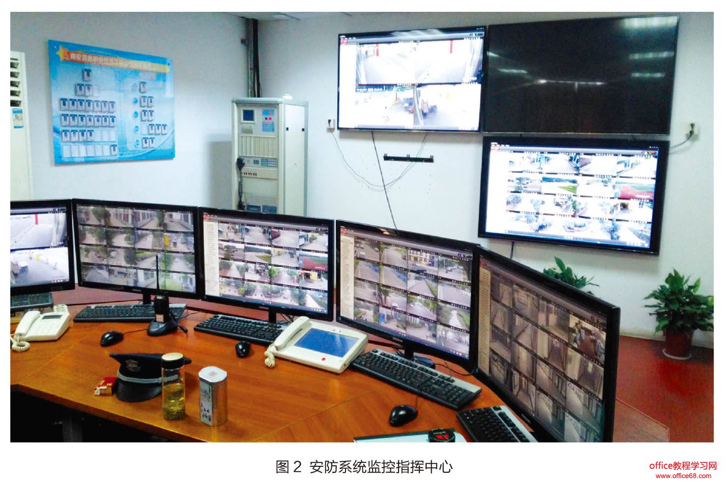 校园监控指挥中心如图2所示,安全管理处等主要查看监控的场所布置专线连接校园监控专网,其余楼宇安全相关人员通过防火墙NAT地址访问监控平台,并且只能查看该楼宇内部监控视频,分区域监控减轻了系统硬件资源的负担。