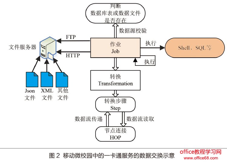 由于移动微校园的建设依赖多项校园移动碎服务,尤其每个碎服务的接口规范,数据库类型、数据标准等差异较大,因此需要应用数据交换手段,把来自不同数据源与数据标准的数据进行优化表达,提高数据质量,对数据进行按需增量抽取、转换、加载。