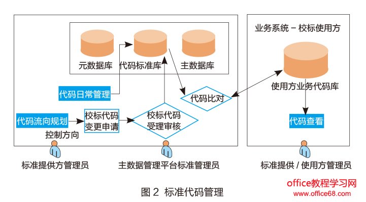 标准代码管理包括日常管理、变更审核、流向规划代码比对和代码使用等几个功能(如图2所示)。标准提供方管理员负责规划和控制代码流向,主数据管理平台标准管理员负责审核校标代码变更申请和日常管理工作。标准使用方管理员在业务代码库使用前必须与代码标准库进行认真比对。