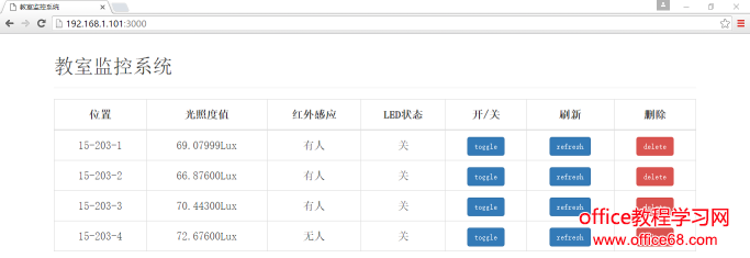 本文设计一种基于6LoWPAN协议栈的教室监控系统,采用node.js技术实现教室监控系统的B/S架构,能够跨浏览器监测教室的光照度值、是否有人和照明信息,根据传感器信息控制照明的亮灭.本系统为每个传感器节点分配唯一的IPv6地址,方便实现对教室照明灯的识别、管理和控制,以及照明灯之间的协同工作,实现教室照明灯的信息化管理,不仅节约能源,更为IPv6技术和物联网技术的发展奠定了基础.