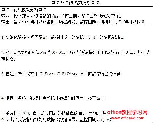 当机器学习算法获得某仪器设备的最低工作功率Pm后,对该仪器设备每天的待机能耗、时间进行统计。如算法2所示,实现描述如下: