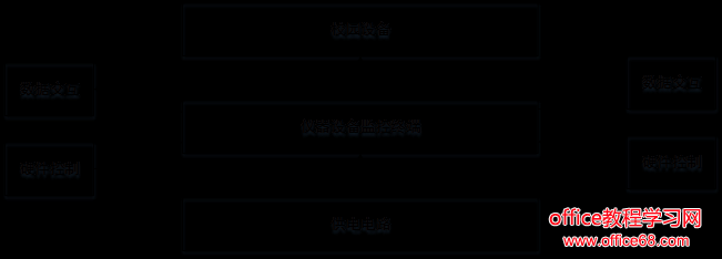 在硬件控制模块中,用户通过该平台发出硬件控制指令,硬件控制模块调用相应的Web服务,Web服务向硬件控制服务器发送控制命令,实现对硬件进行控制。如图3所示,对于硬件的控制是通过控制仪器设备监控硬件实现。每一个仪器设备的供电均必须通过该硬件,其中供电端是校园供电电路,用电端是校园仪器设备。在这个设计中,校园设备的供电必须经过仪器设备监控终端。该设计模式可以获取仪器设备当前的电流、电压、功率等数据,同时可以通过继电器的开和关的控制实现对仪器设备的上电和断电。