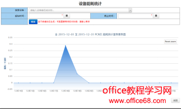 图9 学院能耗统计 同时,平台采取一种能耗统计面积堆积图的形式,对单台仪器设备在一段时间内的能耗情况进行展示。如图10为一台PCR仪在2015-12-01到2015-12-31的能耗统计面积堆积图。