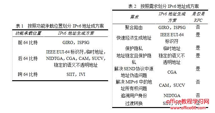 根据表2,我们总结了目前已有的较为典型的IPv6地址生成方案的设计需求:快速经济地生成地址、保护用户的隐私、验证用户的身份、追溯用户的身份、便于聚合路由、过渡转换.