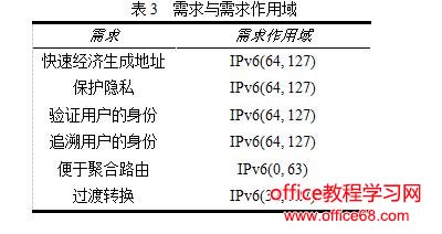 由于上述设计需求中既包含了作用于地址前缀的需求,也包含了作用于接口标识的需求,还包含了作用于地址中间部分的需求.因此,对于一个给定的需求,应当如何判断此需求在IPv6地址中的作用位置呢?为此我们引入需求作用域来解决这个问题.