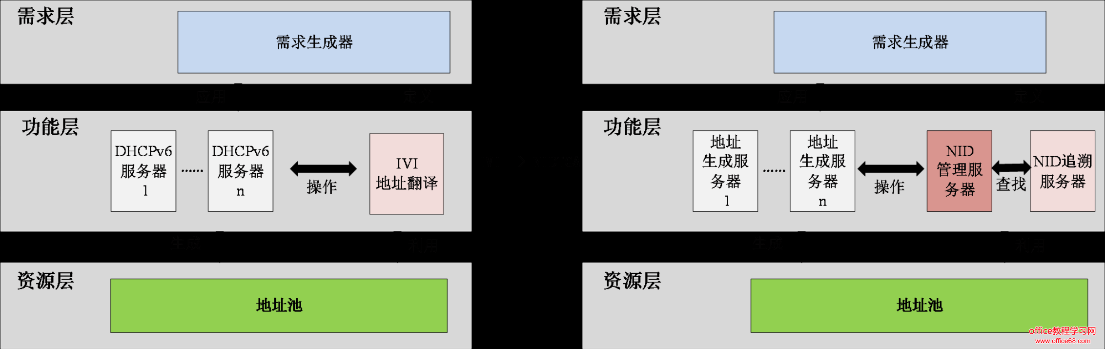 本系统包含多种地址生成方案以便管理多种需求.如果一个网络想要改变络的地址生成方式,则可以直接在需求生成器中切换至预设好的对应方案的需求.例如,图3为从IVI实例切换到NIDTGA实例的过程.在这个过程中,我们仅需在需求生成器中切换络所选需求即可完成络内的地址生成方案的切换.因此,本系统中的方案具有良好的可管理性.