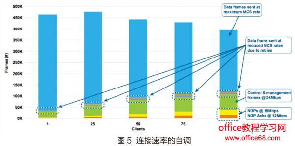 2.连接速率的自适应下调也不是系统吞吐量下降的主要原因。从图5中可以观察到,由于retry导致Wi-Fi终端自适应降低射频速率的数量并未明显增加,因此自适应的速率调节也不是系统吞吐量下降的可能原因。
