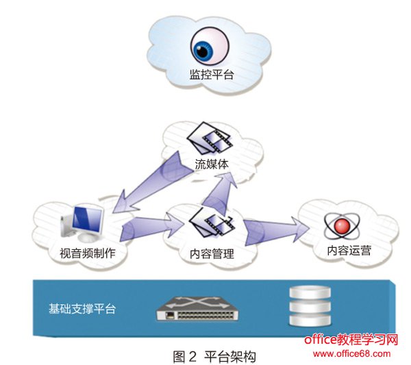 基础支撑平台起到对应用层平台的支撑作用,平台涵盖网络、存储、服务器等,承担资讯发布、视频发布、流媒体服务、互动信息发布、移动终端发布等硬件环境。