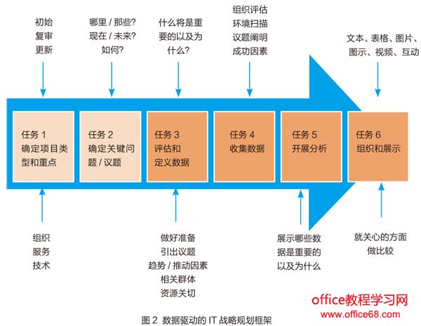 当这两项预备工作完成后,数据驱动的IT战略规划框架的关注点将转向图2中的下面四项任务: