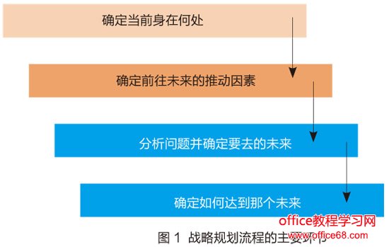 战略规划用于描述在未来一段时间中组织的关键流程、人员和技术的情况,以及在给定当前的流程、人员和技术情况下如何实现这个未来目标。为了确保规划能够达到其目的,院校(具体而言是指其战略规划团队)必须充分掌握当前的状态,以及那些影响和推动其达到未来状态的所有因素。图1展示了战略规划流程的主要环节。