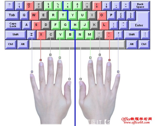 数字专区的指位分配 触觉打字法 触觉打字法的优点 未学习过打字技能的人,打字时通常需要一边看键盘以寻找按键的位置,因此是以「视觉」为基础的打字方法。触觉打字法,顾名思义,即是以触觉为基础的打字方法,其目标是要打字员在打字过程里从头到尾都无须看键盘,眼睛通常是看着打字稿或是屏幕。 触觉打字法的最大好处在于其速度,因为打字员在学习触觉打字法「一开始」便须将按键的位置分配牢记在心,所以在打字时便无须花时间寻找按键的位置,因此加快了打字的速度。经过一定时间的练习后,按键位置与手指移动的配合会转化为反射动作,也就是说打字员甚至不需要去「思考」该使用哪只手指、朝什么方向移动、要不要按下「Shift」键等问题,手指的反射动作会自动做出正确的反应。 因此触觉打字法的训练会让你练成「想都不用想」的打字方法,到时候你想打慢一点都不行呢? 基本键与定位键 触觉打字法的中心概念在于「基本键」与「定位键」的使用。 所谓基本键,指的是「A S D F」及「J K L ;」八个键,前四个键分别对应到「左手」的小指、无名指、中指、以及食指,后四个键则对应到「右手」的食指、中指、无名指、以及小指。初学触觉打字法时,在打字开始前,打字员应将八只手指放置在基本键上,各手指由基本键「出发」去按其他按键,之后须再迅速「回归」到基本键,然后再「出发」去按下一个键。再稍微熟练之后,则不须每按一个键便「回归」基本键,通常只有在打字中间暂停期间才需要「回归」。 然而如何才能在不看键盘的状况下让手指找回「基本键」,其秘诀就在「定位键」,定位键指的是基本键里的「F」键及「J」键,这两个按键上各有一个小小的突起,当左手的食指碰到「F」键上的突起,便可以确认食指已回到「F」键上,同理右手食指碰到「J」键上的突起,便知道已回到了「F」键上。 数字专区里也有它自己的基本键及定位键,其基本键为「4 5 6 Enter」,定位键则为「5」。 打字技能养成 如何成为打字高手? 打字是一种技能,基本上「熟能生巧」的定律在此一样适用,多花时间、多下苦功练习是进步的必要条件,然而除了多练习外,选择一套优良的打字学习软件来使用可达到事倍功半的效果,一般而言,一个好的打字学习软件应具有以下几个特色:尚有以下几项秘诀: 1.须具备亲和的图形界面。 2.实时提示按键位置及手指位置。 3.循序渐进的课程安排。 4.适度分配各按键的练习量。 5.针对弱点键反复加强训练。 6.学习进度的追踪与控制。 7.自动侦测、显示打字错误。 8.透过音效警示错误。 9.丰富的练习文章。 10.提供打字测验与检定模拟考。 |