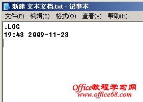 打开记事本,在第一行的开头输入“ .LOG”(不包含引号,大写字母),然后保存文件。这样,每次打开该文本文件后,将自动添加当前的日期和时间,并将光标定位于日期和时间的下一行。如图所示。