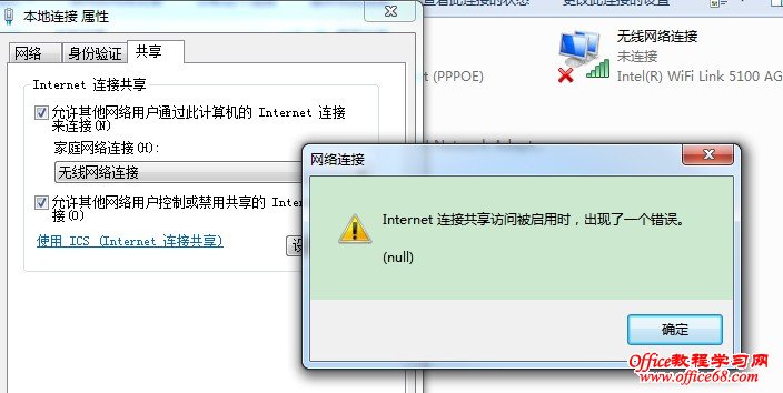 Internet 连接共享访问被启用时,出现了一个错误