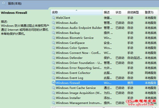 在windows服务项中找到windows firewall的服务,开启