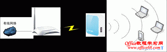 (三)下面我们介绍TL-WR703N的无线AP模式下桥接模式(Bridge with AP)下的应用。 ① TL-WR703N与11g路由器无线桥接的配置 注:在TL-WR703N在选择桥接模式(Bridge with AP),支持的加密类型如下:WEP、无加密、不修改无线安全设置。(此例选择WEP进行无线加密) 此例11g路由器以TL-WR541G+为例,网络拓扑图如下所示: