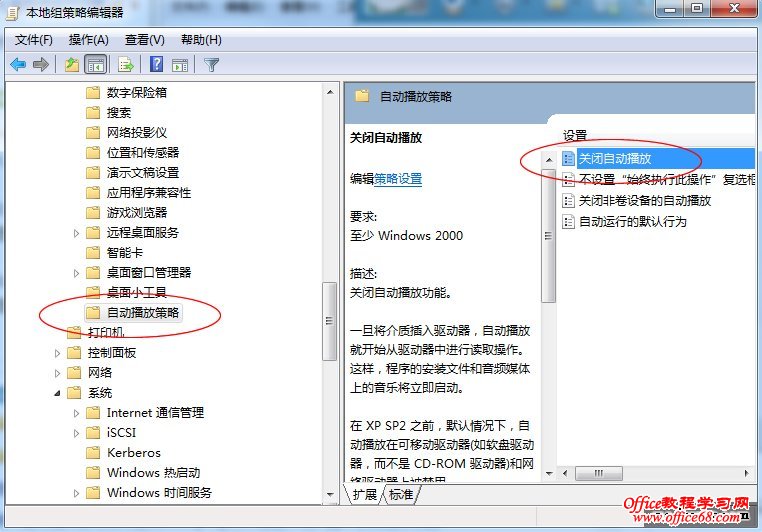 1、在运行里面输入 “gpedit.msc”,在打开的“本地组策略编辑器”对话框中左边的树型菜单依次点击打开:“计算机配置”——“管理模板”——“Windows组件”——“自动播放策略”,