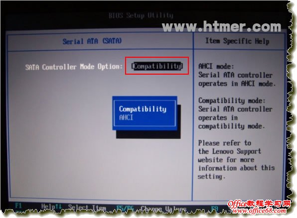 5、按F10保存BIOS修改信息后,退出重启计算机即可安装Windows XP了。 说明:AHCI为SATA接口,Windows XP无法识别此设备,所以要将其改成Compatibility兼容模式。 |