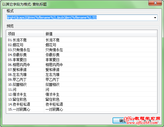 图三 选中专辑的所有文件,打开属性。在“音轨标题”上右键选择“从其他字段获取格式”,然后使用如下代码,图四: