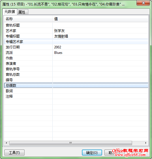 图一 在foobar中打开该专辑如图二,对于没有标题的mp3,foobar自动将文件名作为标题显示出来。但真正的标题和音轨号是空的(图三)。