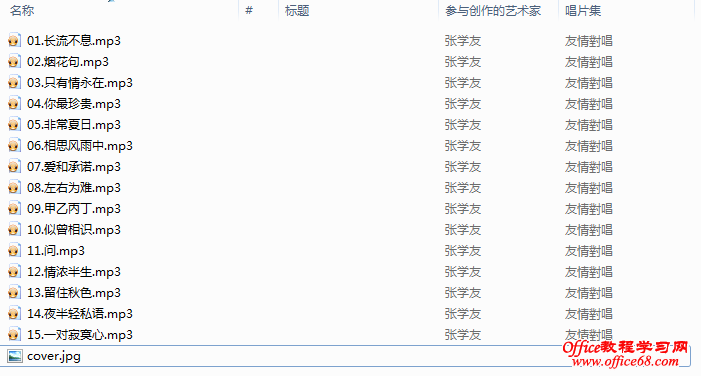 遇到的问题:网上download专辑时,我们经常会碰到下载的专辑里缺少标题和音轨等信息的,甚至有时候音乐文件(以下以mp3文件为主)的属性里面一片空白,手动一个一个mp3添加属性实在很麻烦,这时候就只能召唤神器foobar了。 前提条件:不过这个教程只适用于文件名是“01.吻别”的情况,当然,像“001 – 吻别”或“01张学友-吻别”这样类似的文件名都可以(文章最后面介绍方法),也就是说:文件名中必须包含音轨和歌曲标题信息。比如图一这种情况。