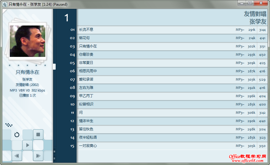 几秒钟过后,是不是标题音轨都正常了呢? 实际上不可能音乐文件名都是“01.吻别”这种情况,这时候就要稍微改动一下代码,foobar的标题格式化语法还是很简单的,你只要稍微花点时间,就可以看懂代码并进行修改。 可能很多童鞋还没接触过foobar,我简单介绍一下代码: $right($caps2($trim(%filename%)),$sub($len(%filename%),3))中”caps2″也可以改成“caps”,”caps”的作用是“将所有单词的第一个字母转换为大写,所有其他字母转换为小写,例如: “blah BLAH” ⇒ “Blah Blah” ”。而“caps2”的作用是“不改变已为大写的字母,例如: “blah BLAH” ⇒ “Blah BLAH”. ” 而像“001.吻别”这种情况的,只需要把“$len((%filename%),3)”的3改成4就行了,也就是截掉“吻别”前面字符占的位数。 |