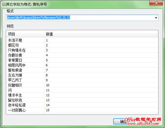 如何获取音轨号呢?一样在“音轨序号”上右键“从其他字段获取格式”,然后使用如下代码,图5: