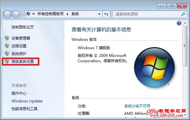 对于XP系统安装完成后会默认1.5倍预设虚拟内存(最大值3倍预设,参图中的自定义大小部分),并且是放到系统盘,如果需要转移到其它盘,只需要把当前驱动器的页面文件设置为无分页文件并点击旁边的设置按钮即可,然后再另外一个驱动器指定页面文件大小。 Windows 7虚拟内存大小设置: 方法与XP步骤类似:依次打开控制面板——系统,点击左侧的高级系统设置,如下图: