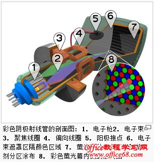 如果是单纯为了设置分辨率,根本不用再看天缘的文章,只需摸索两次即可找到设置方法。问题虽小,不过一旦细心的总结起来,牵扯到知识还是比较广,比如液晶显示器的显示原理,各种实现技术,液晶分子的扭转规则等等,很多知识天缘也是接触不多,幸好自己一直本着学习的心态去写作,故同样希望网友们能本着学习的心态去阅读,而并非单纯为了解决问题,本文就再“续貂”一篇谈谈显示器的刷新频率问题。 很多网友都会怀念传统的CRT(Cathode Ray Tube,阴极射线管)显示器,CRT显示器引领着从黑白屏一直到真彩屏的时代变迁,刷新频率概念也是从CRT显示器诞生的那天就有了,而如今显示器市场 早已被液晶显示器完全垄断,由于刷新频率不再是液晶显示器的主要卖点,这个词也很少被提及,至少没有CRT那么火热。 CRT显示器优点有:色彩丰富、响应速度快、视角宽,缺点有:耗电、体积大、笨拙、辐射大。 液晶显示器优点有:体积小、轻便、省电、辐射小,缺点有:色彩没CRT丰富、响应速度慢、视角相对窄。 这是目前两者优缺点比较情况,随着制造工艺发展,液晶显示器会越来越逼近或解决现有缺点。目前CRT显示器仍然适合某些特殊场合,比如雷达监控、中低端的监控市场等场合,普通电脑用CRT显示器已经很少见到。 基础阅读: 宽屏液晶显示器尺寸及功耗介绍 典型尺寸下显示器的最佳分辨率设置 一、显示器刷新频率概念“刷新频率”顾名思义就是显卡每秒刷新多少次显示屏,假设驱动程序和显示屏都不作弊的条件下,显示屏理论上就是应该跟着刷新频率的步调同步更新显示内容,刷新频率说起来简单,但是从技术上一直是个大难题,早期的CRT显示器虽然支持较高的刷新频率,但过高的刷新频率肯定会导致显示屏拖尾和老化现象,因为磷粉的显示消隐肯定需要一定的时间,另一方面,CRT的刷新频率又不能太低,否则就会造成闪屏现象,因为磷粉需要持续的轰击才会保持光亮(结构剖面图如下,来源维基百科,地址参文末)。