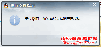 方法步骤3、如果对方真实不在线,那么就会提示“撤回成功,对方不会收到该文件”,但是如果对方是在线或隐身状态,那么就会提示“无法撤回,你的离线文件消息已发送”。 到此,整个判断过程完毕,方便简单,无需借助第三方工具,你也赶紧去试探一下你关注的那个ta吧! |