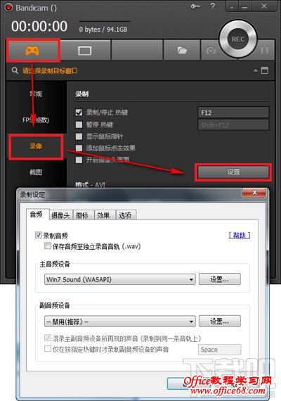 3、使用Bandicam录制没声音主要是下图中的录制音频前面的勾未勾选所以才会导致无声音。