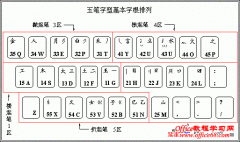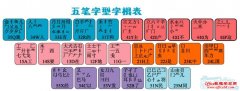 由五种笔划构成的基本字根有130种,并将根据它们的起笔分为以下五个区,参见表。 一区 横起笔类,27种,由G、F、D、S、A键输入。 键名字为王、土、大、木、工。 二区 竖起笔类,23种,由H、J、K、L、M键输入。 键名为目、日、口、田、山。 三区 撇起笔类,29种,由T、R、E、W、Q键输入。 键名为禾、白、月、人、金。 四区...