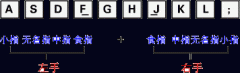 准备打字时,除拇指外其余的八个手指分别放在基本键上,拇指放在空格键上,十指分工,包键到指,分工明确。 每个手指除了指定的基本键外,还分工有其他字键,称为它的范围键。其中黄色的键位由小手指负责,红色的键位由无名指负责,蓝色由中指负责,绿色键位由食指负责,紫色空格键由大拇指负责。 掌握指法练习技巧:左右...