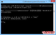今天在用mstsc远程处理一台电脑问题时发现这台电脑总是不能远程关机,又无法再mstsc远程过去,这时想到用关机命令来远程关机。 要实现远程关机,首先需要用DOS命令打开连接通道,所以,先打开DOS命令提示符界面,输入net use \\IP地址\ipc$ /user:administrator并按回车。注意其中的红色字需要你改掉的。 然后输入那台电脑...