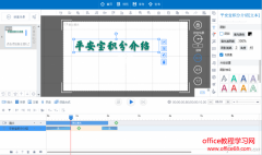 1. 炫彩文字添加与动画设置 点击新建空白项目(也可以在各类模板中选择所需要的模板进行编辑),在窗口右侧的工具栏选择文本按钮,将所需要的示例文件拖动到空白场景中,点击添加的文本进行编辑,输入所需内容,设置好所需样式(图1)。 文字添加完成后,在文字时间轴上双击左面的无进行进入动画的设置,在弹出的窗口中选...