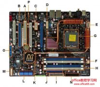 上图是一块华硕 P5N32-ESLI 主板,不同主板组件会有所不同,主板各组件的位置可能不同但都比较接近的。 图片中已经使用英文字母标识出主板中主要的组件,对应的组件名称和功能说明如下列表所示: A: PCI插槽 这块主板有2个PCI插槽,它们可以用来安装独立网卡、声卡等设备。 B: PCI-E 16x插槽 这块主板也有2个PCI-E 16x插...