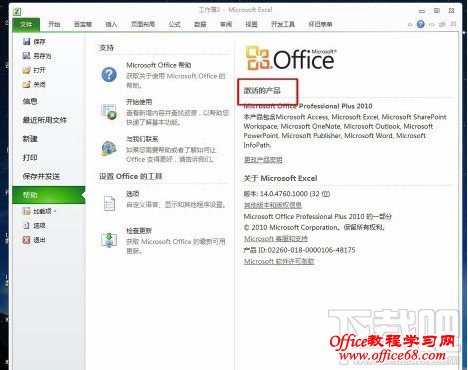4:不需要重启电脑,重新打开Excel 2010,看最上面的那个标题栏,红色提示框不见了吧,不信的话再点击“开始”——“帮助”,可以看到激活的产品的信息: