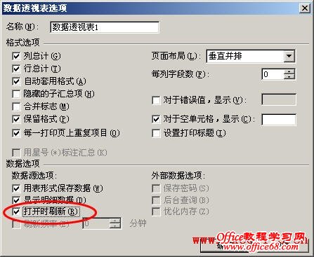 当数据源中的数据更改后,数据透视表默认不会自动刷新。可以通过右击数据透视表,在弹出的快捷菜单中选择“刷新数据”(Excel 2003)或“刷新”(Excel 2007)来手动刷新数据透视表。如果需要自动刷新数据透视表,可以用下面的两种方法: