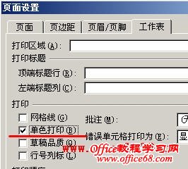有的用户在制作Excel工作表时用到了许多不同的颜色来填充单元格或区域,使工作表看上去更加醒目,但打印工作表时又希望用黑白方式打印。对于连接了彩色打印机的用户,Excel中的单色打印功能可以满足其要求。方法是: 在Excel 2003中,单击菜单“文件→页面设置→工作表”,勾选“单色打印”即可。在Excel 2007中,在功能区中选择“页面布局”选项卡,在“页面设置”组中单击“打印标题”按钮,在弹出的对话框中,勾选“单色打印”,然后单击“确定”按钮。 |