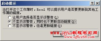 如果需要在打开工作簿时不显示提示,也不自动更新链接,可以进行下面的设置: