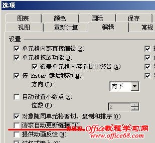 单击菜单“工具→选项→编辑”,取消选择“请求自动更新链接”,然后单击“确定”按钮。