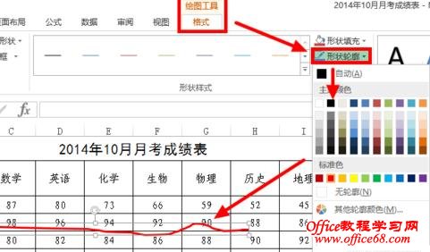 工作中常遇到需要在表格中对某些部分任意标出,达到如用笔在纸质表格上表明一样的效果。利用插入形状,能够实现。具体怎么做下面小编来告诉你吧。 Excel 2013表格中任意划线的步骤: 打开需要标准的表格,点击“插入-形状”。 ![]() 在形状下拉菜单中,选择线条中的“自由曲线”。 ![]() 按住鼠标左键拖动,在需要标注的地方即可任意划线。 ![]() 在所划之线处于选中状态下,上方有绘图工具菜单,点击右边的“形状轮廓”,可以设置线条的颜色,例如选择红色,就可以看到左边标注线变成了红色。 ![]() 已经设置成功的红色标注线。 ![]() |