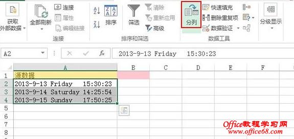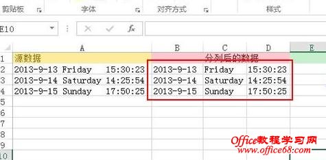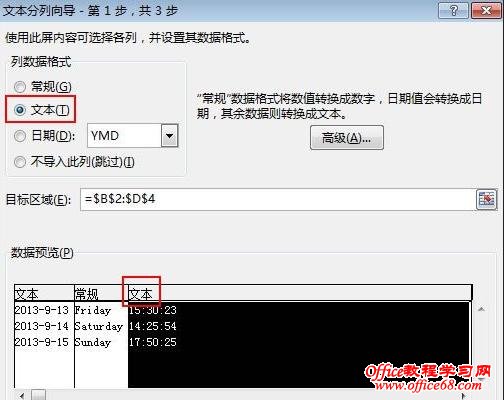 平时工作有时候在某个单元格既输入了中文,又输入了英文,甚至还有时间日期等内容,不进行处理的话,看起来会显得杂乱无章。如果将1列组合型数据分放到几列中进行保存,可以用分列功能来实现。下面小编教你具体怎么做吧。 Excel2013中单元格内容进行分列的步骤: ①启动Excel2013,打开我之前准备好的数据源,这是一组时间日期星期的数据,包含数字、英文等等格式,很明显要进行分列。单击菜单栏--“数据”--“分列”。 ![]() ②弹出文本分列向导,这里我就不介绍固定宽度了,它是添加空格进行分列,我们来重点介绍上面这种,用分隔符号进行分列。 ![]() ③勾选Tab键和空格,切记要选择连续分隔符视为单个处理,否则一遇到分隔符,就会视为分列。 ![]() ④选择列数据格式,我是为了之后进行合并演示,所以将时间这一列也设为了文本格式,否则合并之后得到的格式并不是我们想要的,又要重新设置一次,过于麻烦。 ![]() ⑤分列完成,我将源数据分别按照日期、星期和时间分了列。 ![]() |