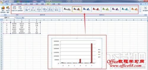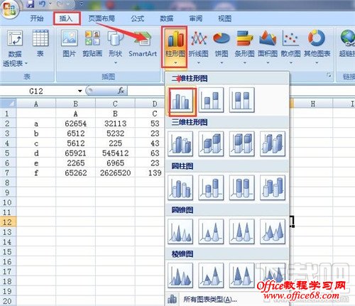 2、然后选择插入>图表,选择图表类型,我这里选择第一个;