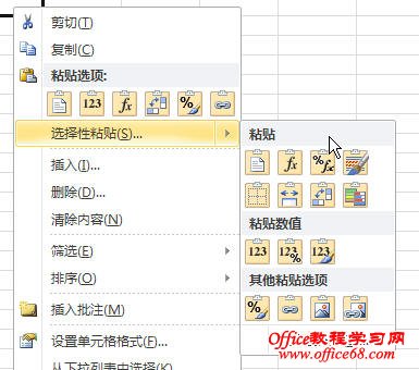 Excel2010快捷菜单中各粘贴选项功能使用基础教程