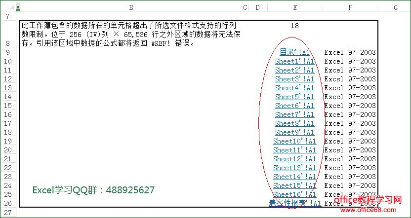 弹出的Excel兼容性检查器框中我们点击左下角的“复制到新表” 。这样我们就可以在一张新的工作表中得到检查后的文件。