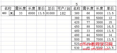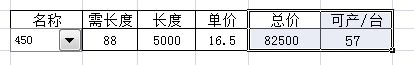 8、运用组合框下拉框选择的数据,可增加价格、长度等计算单元格。