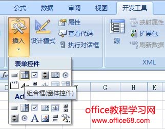 7、将组合框拖放到设置下拉选框的单元格,调整大小。