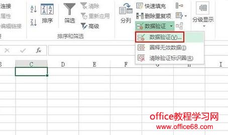 选中操作界面的A2单元格,选择【数据】-【数据有效性】。