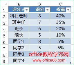 标签(Tag):excel excel2013 计算加权总分