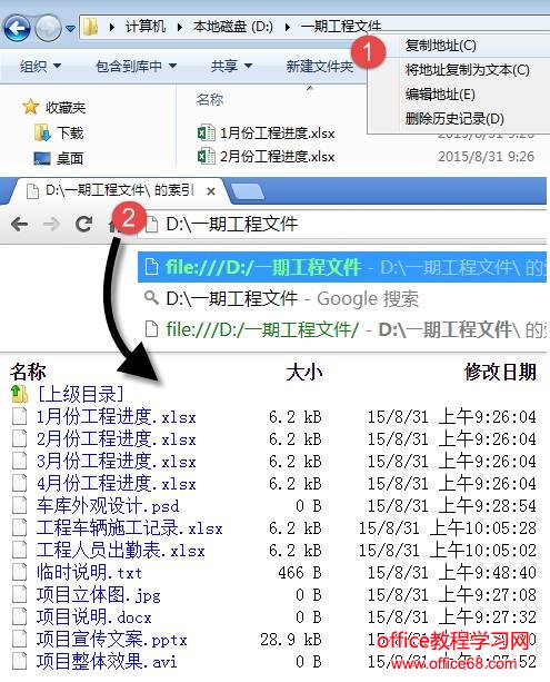将记事本文档的后缀名.txt 修改为.bat ![]() 然后双击这个文件,就会得到一个名为“目录”的记事本文件。 ![]() 这样就可以将目录中的文档名复制到Excel文档中了。 方法二: 打开文件夹,右键单击地址栏,复制地址。 然后打开谷歌chrome浏览器或是世界之窗浏览器(IE浏览器不可以,其他未测试),粘贴到地址栏。 ![]() 接下来按Ctrl+A 全选浏览器中的内容,按Ctrl+C复制。 打开Excel文档,选择性粘贴为文本,删除多余内容。 ![]() 然后在B1单元格输入公式,建立超链接: